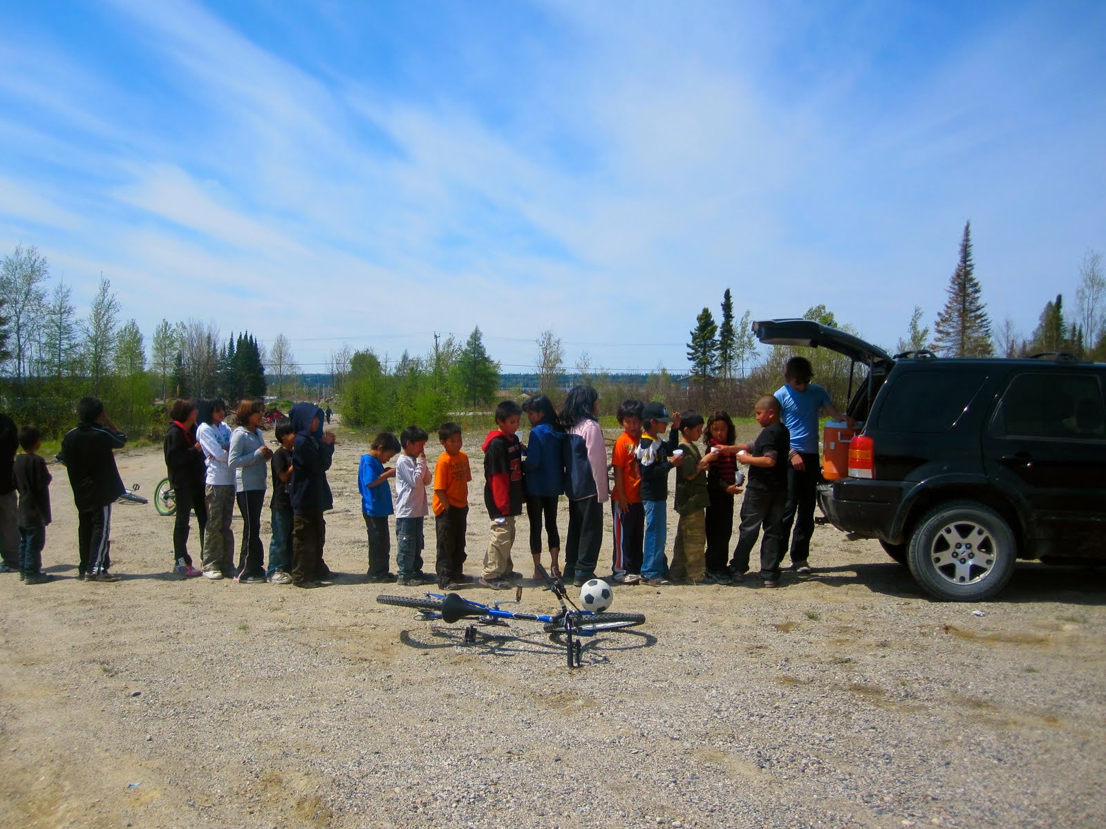 Lining up for juice and snacks |